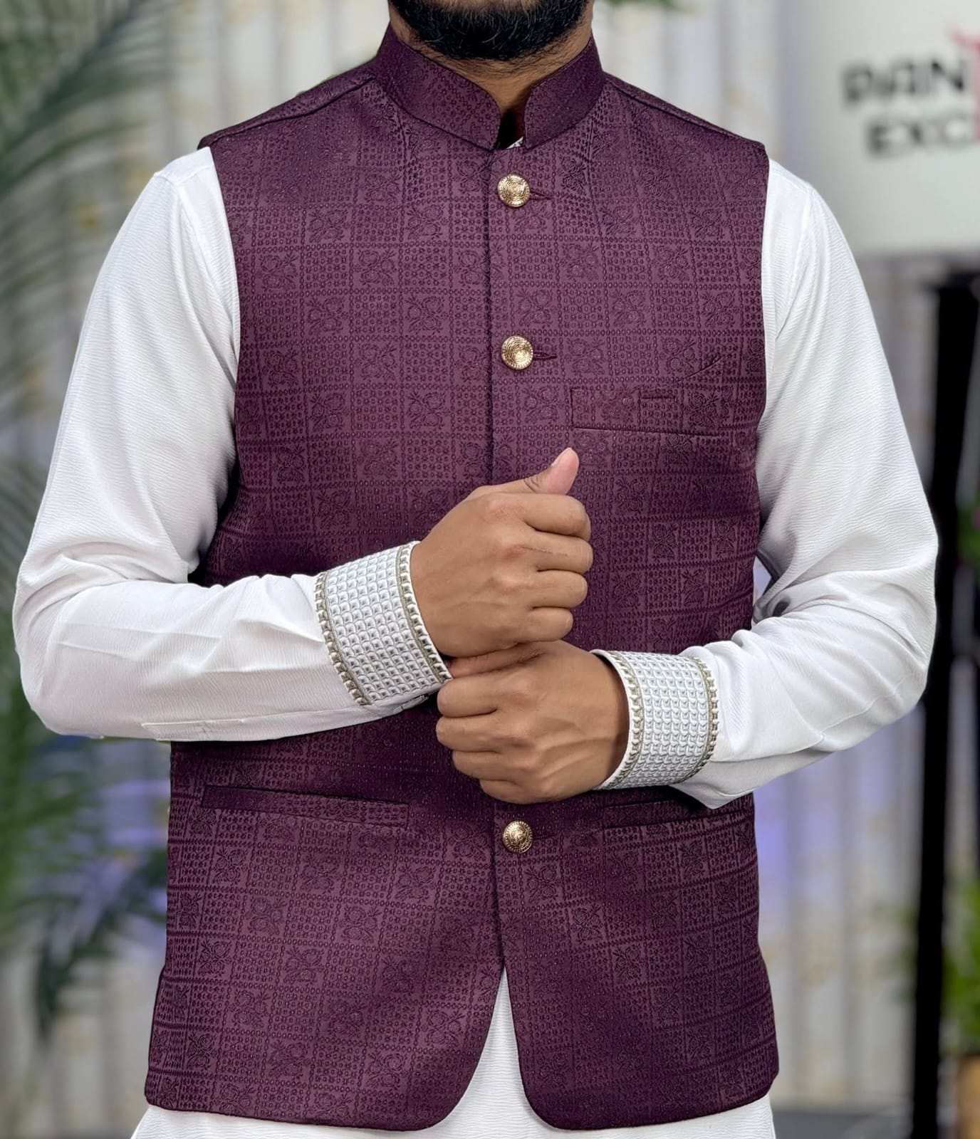 প্রিমিয়াম ইন্ডিয়ান কাতান কাপড়ে তৈরি এই কটি যেকোনো পাঞ্জাবি, কুর্তা, বা শেরওয়ানির সাথে মানানসই।